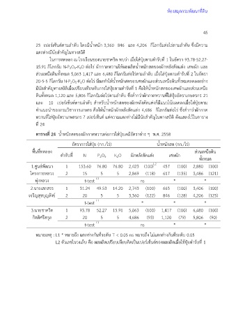ส่วนเหนือดินทั้งหมด 5,063 1,417 และ 6,480 กิโลกรัมต่อไร่ตามล าดับ เมื่อใส่ปุ๋ยตามต ารับที่ 2 ในอัตรา