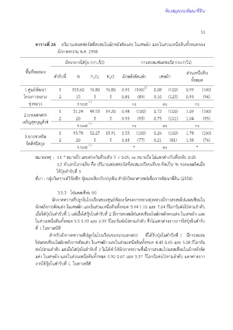 ในส่วนเหนือดินทั้งหมด 5.5 1.43 และ 6.99 กิโลกรัมต่อไร่ตามล าดับ ซึ่งไม่แตกต่างจากการใส่ปุ๋ยในต ารับ