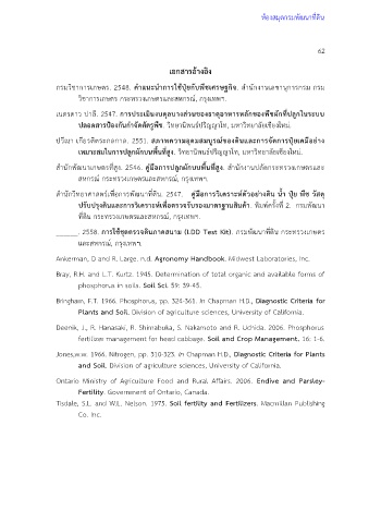ส านักวิทยาศาสตร์เพื่อการพัฒนาที่ดิน. 2547. คู่มือการวิเคราะห์ตัวอย่างดิน น้ า ปุ๋ย พืช วัสดุ