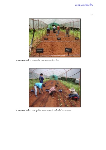 ห้องสมุดกรมพัฒนาที่ดิน 71 ภาพภาคผนวกที่ 3 การวางผังการทดลองภายในโรงเรือน ภาพภาคผนวกที่ 4 การปลูกผักกาดหวานภายในโรงเรือนที่ท าการทดลอง