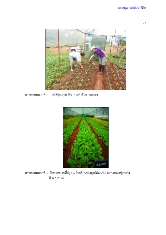 ห้องสมุดกรมพัฒนาที่ดิน 72 ภาพภาคผนวกที่ 5 การใส่ปุ๋ยแต่ละอัตราตามต ารับการทดลอง ภาพภาคผนวกที่ 6 ผักกาดหวานที่ปลูก ณ โรงเรือนของศูนย์พัฒนาโครงการหลวงทุ่งหลวง ปี พ.ศ.2556
