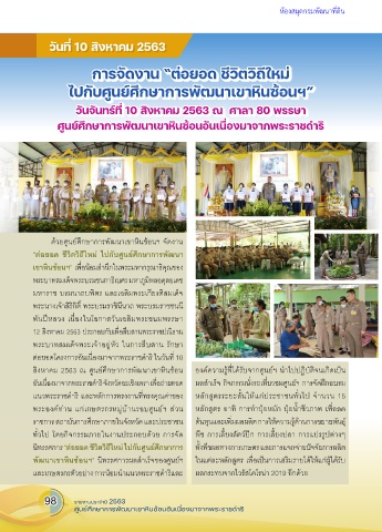 สิงหาคม 2563 ณ ศูนย์ศึกษาการพัฒนาเขาหินซ้อน องค์ความรู้ที่ได้รับจากศูนย์ฯ น�าไปปฏิบัติจนเกิดเป็น