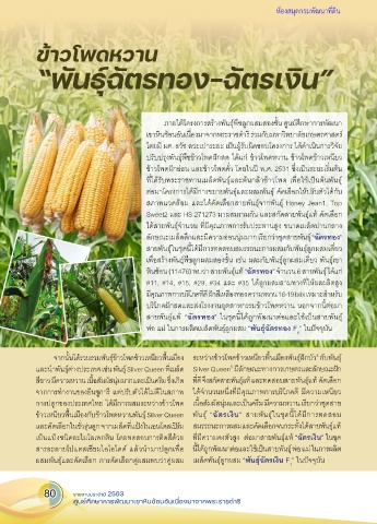 ข้าวเหนียวพื้นเมืองกับข้าวโพดหวานพันธุ์ Silver Queen พันธุ์ “ฉัตรเงิน” สายพันธุ์ในชุดนี้ได้มีการทดสอบ