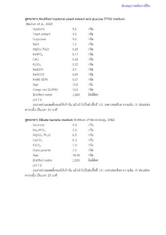 สูตรอาหาร Modified tryptone–yeast extract and glucose (TYG) medium