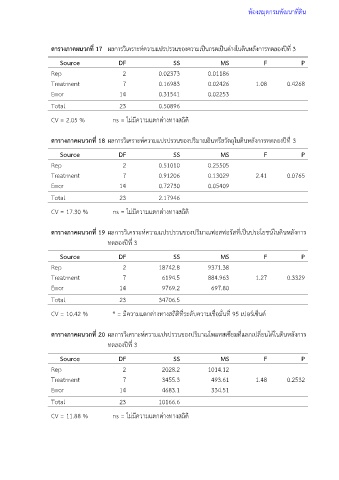 CV = 17.30 % ns = ไม่มีความแตกต่างทางสถิติ