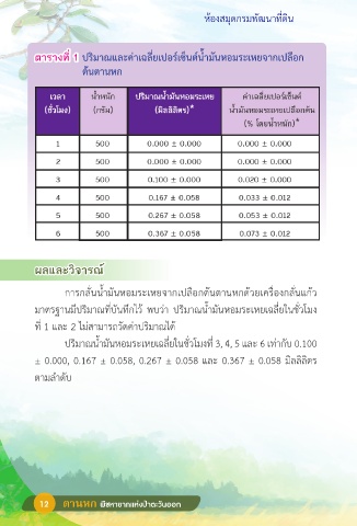 ตารางที่ 1 ปริมาณและค่าเฉลี่ยเปอร์เซ็นต์นำามันหอมระเหยจากเปลือก
