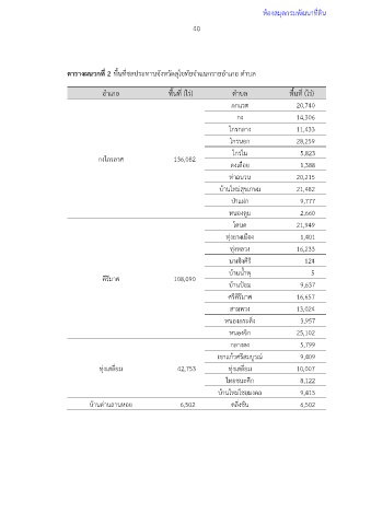 อําเภอ พื้นที่ (ไร) ตําบล พื้นที่ (ไร)