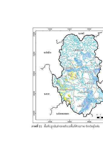 ห้องสมุดกรมพัฒนาที่ดิน 51 ภาพที่ 11 พื้นที่ปลูกมันสําปะหลังบนพื้นที่ศักยภาพ จังหวัดสุโขทัย