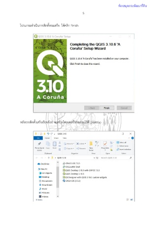 ห้องสมุดกรมพัฒนาที่ดิน 5 โปรแกรมดำเนินการติดตั้งจนเสร็จ ให้คลิก Finish หลังจากติดตั้งเสร็จเรียบร้อย จะสร้างโฟลเดอร์โปรแกรมไว้ที่ Desktop