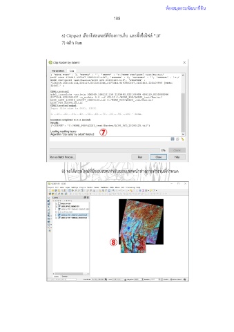 ห้องสมุดกรมพัฒนาที่ดิน 108 6) Clipped เลือกโฟลเดอร์ที่ต้องการเก็บ และตั้งชื่อไฟล์ *.tif 7) คลิก Run 8) จะได้ภาพใหม่ที่มีขอบเขตเท่ากับขอบเขตหน้าต่างการทำงานที่กำหนด