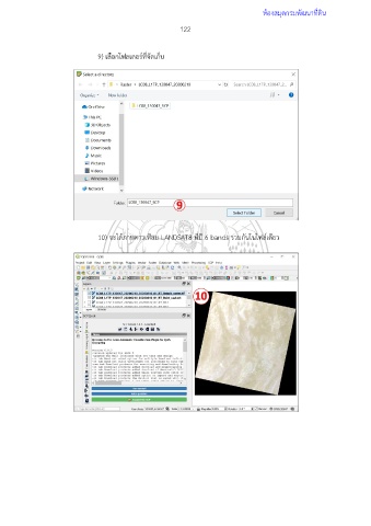 ห้องสมุดกรมพัฒนาที่ดิน 122 9) เลือกโฟลเดอร์ที่จัดเก็บ 10) จะได้ภาพดาวเทียม LANDSAT8 ที่มี 6 bands รวมกันในไฟล์เดียว