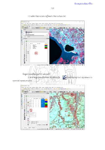 ห้องสมุดกรมพัฒนาที่ดิน 137 11) แสดง Macroclass อยู่ในแถบ Macroclass list ข้อมูลรายละเอียดของ ROI แต่ะละตัว 1) สามารถดูรายละเอียดของ ROI ได้จากปุ่ม Add highlighted signatures to spectral signature plot