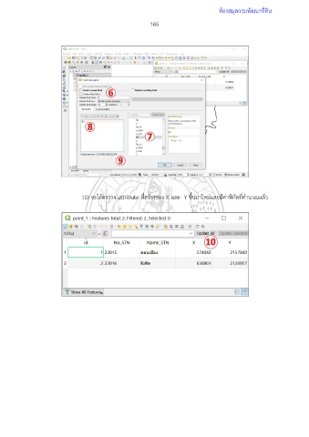 ห้องสมุดกรมพัฒนาที่ดิน 165 10) จะได้ตาราง attribute ที่สร้างช่อง X และ Y ขึ้นมาใหม่และมีค่าพิกัดที่คำนวณแล้ว