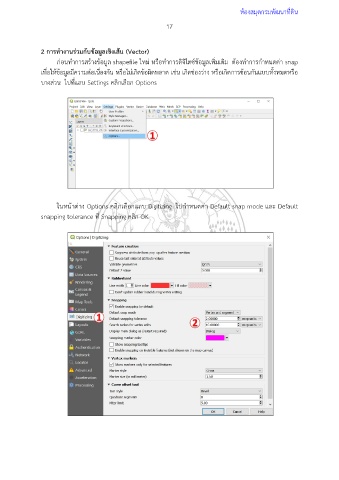 ก่อนทำการสร้างข้อมูล shapefile ใหม่ หรือทำการดิจิไตซ์ข้อมูลเพิ่มเติม ต้องทำการกำหนดค่า snap