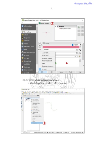ห้องสมุดกรมพัฒนาที่ดิน 31 2.3.2 การกำหนดสัญลักษณ์ข้อมูลแบบเส้น (Line) 1) เลือกชั้นข้อมูลที่ต้องการ คลิกขวาเลือก Properties ในหน้าต่าง Layer Properties ไปที่แถบ Symbology