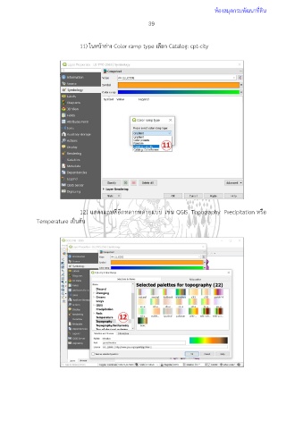 ห้องสมุดกรมพัฒนาที่ดิน 39 11) ในหน้าต่าง Color ramp type เลือก Catalog: cpt-city 12) แสดงแถบสีอีกหลากหลายแบบ เช่น QGIS Topography Precipitation หรือ Temperature เป็นต้น