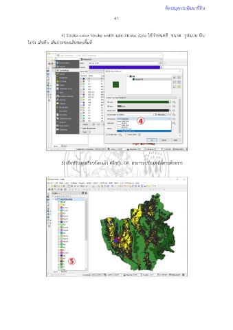 ห้องสมุดกรมพัฒนาที่ดิน 41 4) Stroke color Stroke width และ Stroke style ใช้กำหนดสี ขนาด รูปแบบ ทึบ โปร่ง เส้นทึบ เส้นประของเส้นขอบพื้นที่ 5) เมื่อปรับแต่งเรียบร้อยแล้ว คลิกปุ่ม OK สามารถปรับแต่งได้ตามต้องการ