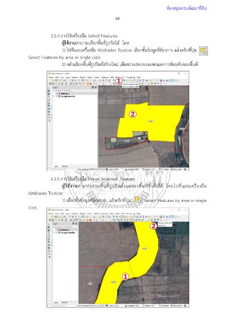 1) เลือกชั้นข้อมูลที่ต้องการ แล้วคลิกที่ปุ่ม Select Features by area or single