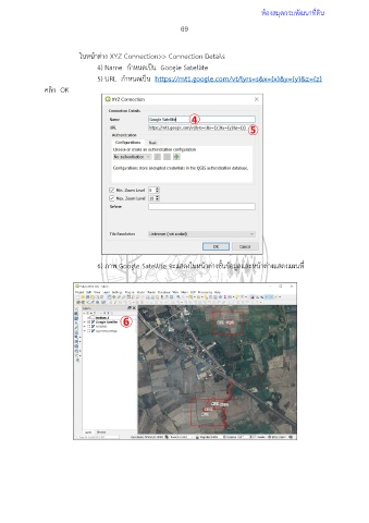 6) ภาพ Google Satellite จะแสดงในหน้าต่างชั้นข้อมูลและหน้าต่างแสดงแผนที่