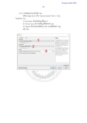 ไปที่แถบเมนู Vector เลือก Geoprocessing Tools >> Clip