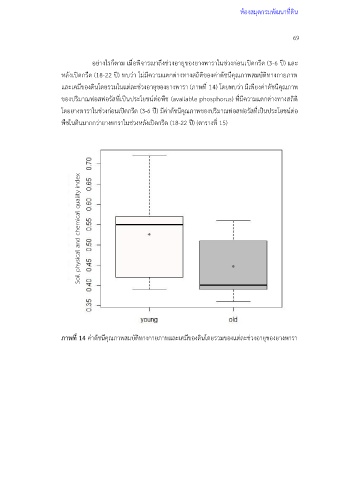 และเคมีของดินโดยรวมในแต่ละช่วงอายุของยางพารา (ภาพที่ 14) โดยพบว่า มีเพียงค่าดัชนีคุณภาพ