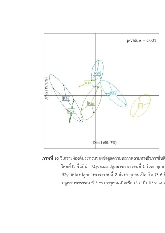 ภาพที่ 16 วิเคราะห์องค์ประกอบของข้อมูลความหลากหลายทางชีวภาพในดินโดยวิธี principle component analysis (PCA)