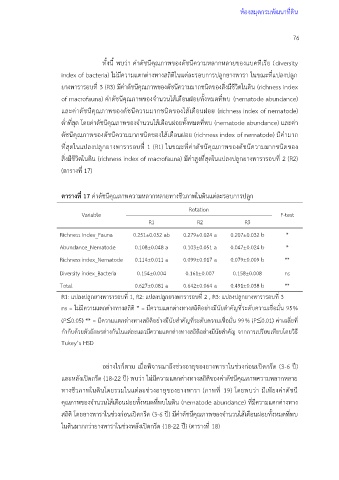 ตารางที่ 17 ค่าดัชนีคุณภาพความหลากหลายทางชีวภาพในดินแต่ละรอบการปลูก
