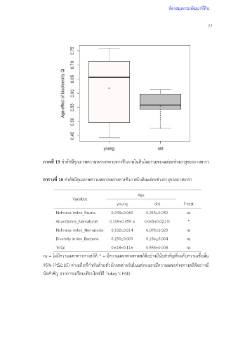 ตารางที่ 18 ค่าดัชนีคุณภาพความหลากหลายทางชีวภาพในดินแต่ละช่วงอายุของยางพารา