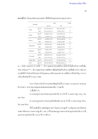 ตารางที่ 21 ชนิดและสัดส่วนของเศษซากพืชที่พบในแต่ละช่วงอายุของยางพารา