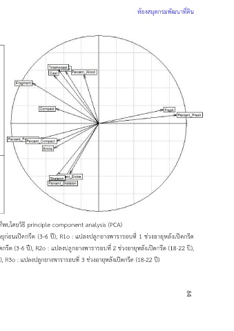 ภาพที่ 21 วิเคราะห์องค์ประกอบของข้อมูลชนิดและสัดส่วนของเศษซากพืชที่พบโดยวิธี principle component analysis (PCA)
