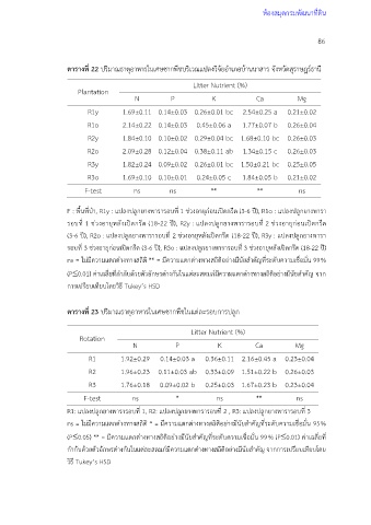 ตารางที่ 22 ปริมาณธาตุอาหารในเศษซากพืชบริเวณแปลงวิจัยอำเภอบ้านนาสาร จังหวัดสุราษฎร์ธานี