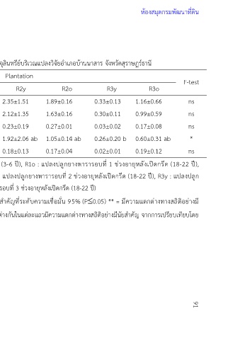 R2y : แปลงปลูกยางพารารอบที่ 2 ช่วงอายุก่อนเปิดกรีด (3-6 ปี), R2o : แปลงปลูกยางพารารอบที่ 2 ช่วงอายุหลังเปิดกรีด (18-22 ปี), R3y : แปลงปลูก