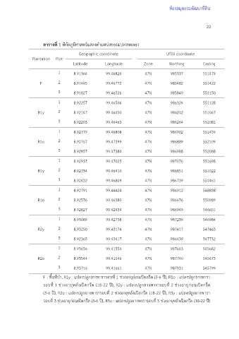 ตารางที่ 1 พิกัดภูมิศาสตร์แสดงตำแหน่งของแปลงทดลอง