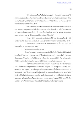 แล้ววัดด้วยเครื่อง Electrical conductivity meter (สำนักวิทยาศาสตร์เพื่อการพัฒนาที่ดิน, 2547)