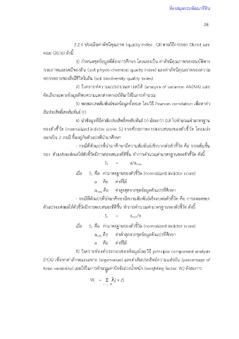 กายภาพและเคมีของดิน (soil physio-chemical quality index) และค่าดัชนีคุณภาพของความ