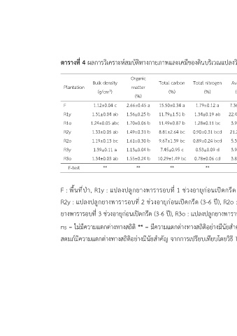 ตารางที่ 4 ผลการวิเคราะห์สมบัติทางกายภาพและเคมีของดินบริเวณแปลงวิจัย อำเภอบ้านนาสาร จังหวัดสุราษฎร์ธานี