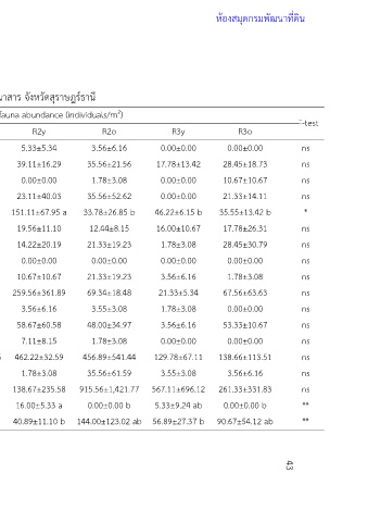 Oligochaeta 222.22±48.39 a 110.22±44.73 ab 220.45±29.37 a 40.89±11.10 b 144.00±123.02 ab 56.89±27.37 b 90.67±54.12 ab 43 **