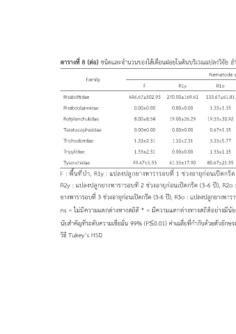 ตารางที่ 8 (ต่อ) ชนิดและจำนวนของไส้เดือนฝอยในดินบริเวณแปลงวิจัย อำเภอบ้านนาสาร จังหวัดสุราษฎร์ธานี
