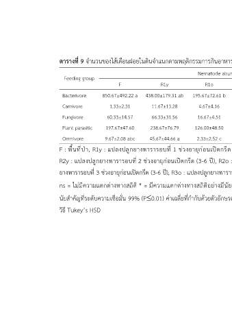 ตารางที่ 9 จำนวนของไส้เดือนฝอยในดินจำแนกตามพฤติกรรมการกินอาหาร (feeding group)