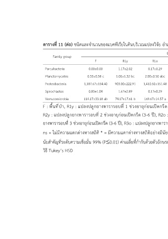 ตารางที่ 11 (ต่อ) ชนิดและจำนวนของแบคทีเรียในดินบริเวณแปลงวิจัย อำเภอบ้านนาสาร จังหวัดสุราษฎร์ธานี