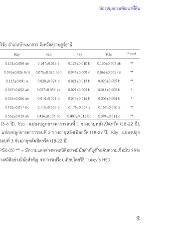 R2y : แปลงปลูกยางพารารอบที่ 2 ช่วงอายุก่อนเปิดกรีด (3-6 ปี), R2o : แปลงปลูกยางพารารอบที่ 2 ช่วงอายุหลังเปิดกรีด (18-22 ปี), R3y : แปลงปลูก