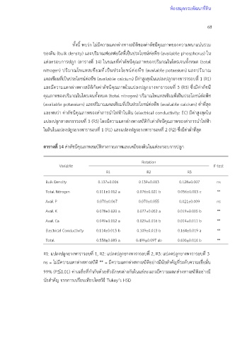 ตารางที่ 14 ค่าดัชนีคุณภาพสมบัติทางกายภาพและเคมีของดินในแต่ละรอบการปลูก