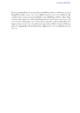 ขึ้น เช่น จำนวนข้อมูลที่ขอรับบริการผ่านระบบดินออนไลนเพิ่มขึ้นอย่างชัดเจน จากเดิมปี 2562 และ 2563