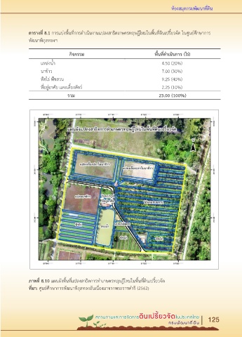 ตารางที่ 8.1 การแบ่งพื้นที่การดำเนินงานแปลงสาธิตเกษตรทฤษฎีใหม่ในพื้นที่ดินเปรี้ยวจัด ในศูนย์ศึกษาการ