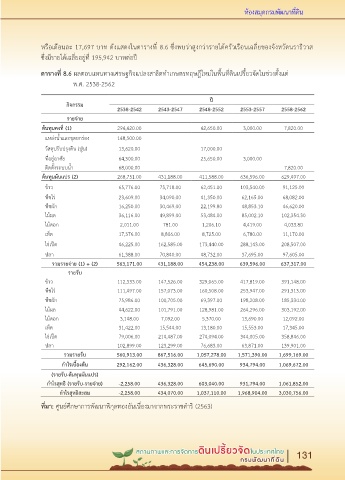 ตารางที่ 8.6 ผลตอบแทนทางเศรษฐกิจแปลงสาธิตทำเกษตรทฤษฎีใหม่ในพื้นที่ดินเปรี้ยวจัดในช่วงตั้งแต่