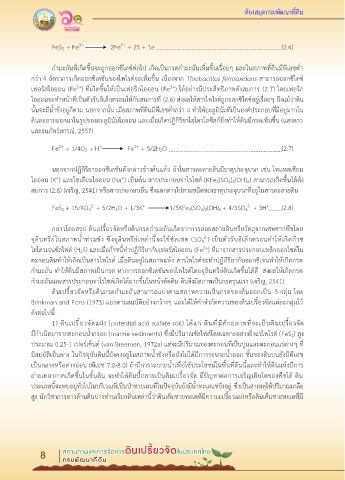 ไอออนจะทำหน้าที่เป็นตัวรับอิเล็กตรอนให้กับสมการที่ (2.6) ส่งผลให้สารไพไรต์ถูกออกซิไดซ์อยู่เรื่อยๆ ถึงแม้ว่าดิน