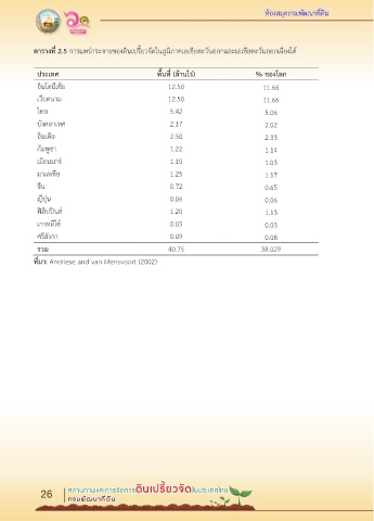 ตารางที่ 2.5 การแพร่กระจายของดินเปรี้ยวจัดในภูมิภาคเอเชียตะวันออกและเอเชียตะวันออกเฉียงใต้
