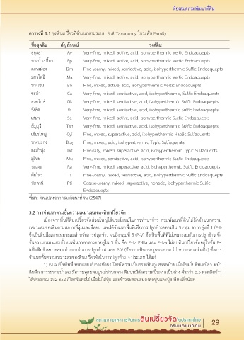 ตารางที่ 3.1 ชุดดินเปรี้ยวที่จำแนกตามระบบ Soil Taxonomy ในระดับ Family