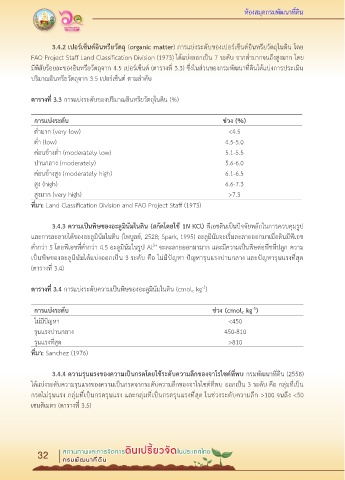มีพิสัยร้อยละของอินทรียวัตถุจาก 4.5 เปอร์เซ็นต์ (ตารางที่ 3.3) ซึ่งในส่วนของกรมพัฒนาที่ดินได้แบ่งการประเมิน