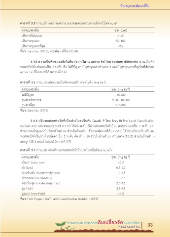 Division and FAO Project Staff (1973) ได้แบ่งระดับปริมาณฟอสฟอรัสที่เป็นประโยชน์ออกเป็น 7 ระดับ จาก